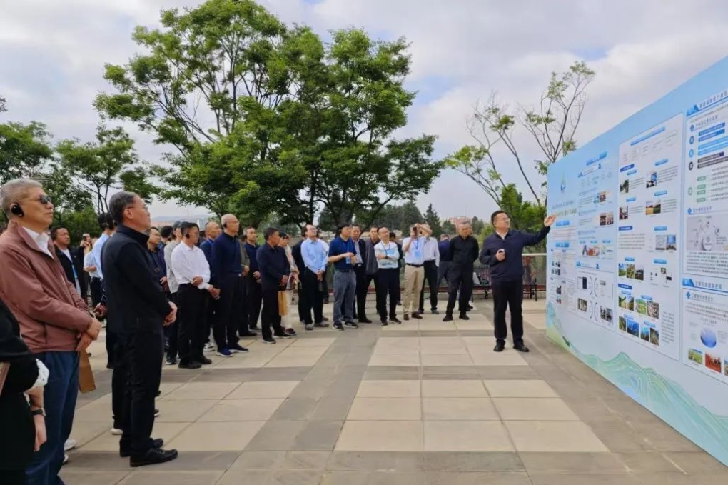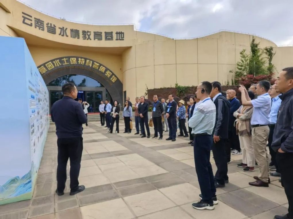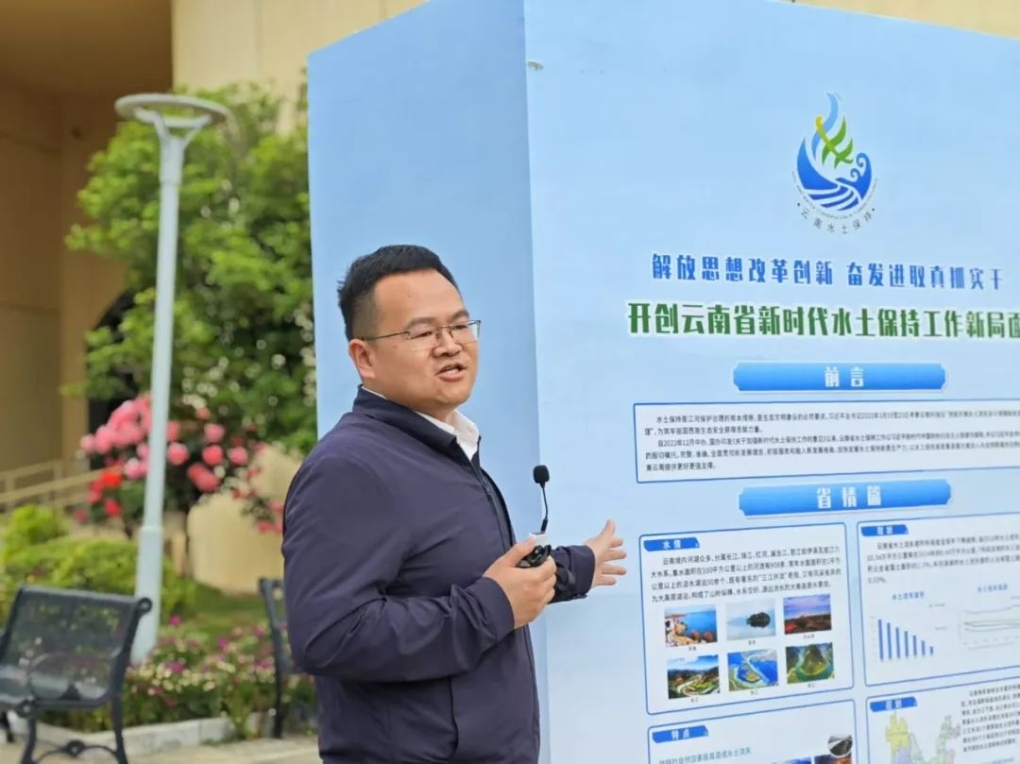 首先,進(jìn)入百草園水土保持科技示范園,在講解員的引導(dǎo)下,學(xué)員們首站走進(jìn)“云南水土保持成就展”,云南省水利廳水保處副處長(zhǎng)張?jiān)仆ㄟ^(guò)圖文展板帶學(xué)員們概覽云南水土保持的成果。