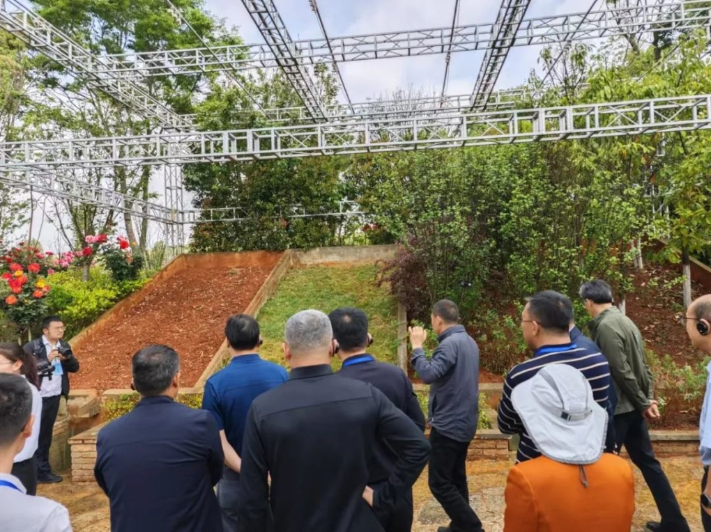 參觀各類固土植物編織成“生態(tài)地毯”,學(xué)員們近距離觀察“滇芎”“滇重樓”等鄉(xiāng)土植物在固土護(hù)坡中的應(yīng)用。一位學(xué)員感嘆:“這里每一株草,都是寫給大地的情書?!?/p>